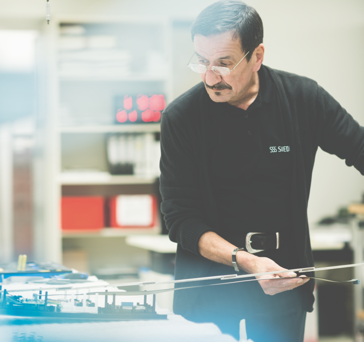 Fotos von Mitarbeitern in ihrem Arbeitsumfeld geben Einblick in das Unternehmen Siedle und zeigen: Es ist möglich, in Deutschland konkurrenzfähige Produkte herzustellen, wenn mit Kreativität und Engagement für dieses Ziel gearbeitet wird.