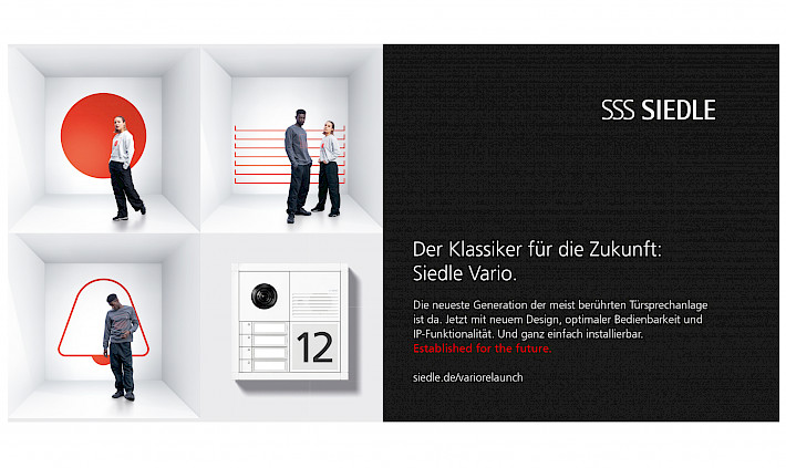 Our product and image advertisements provide complementary answers. What they have in common is a focus on the essentials, the typical Siedle features. The form and function of Siedle products speak the same language – as do the images and messages in our advertisements. This makes them unmistakable and strong in the interest and sense of the brand.